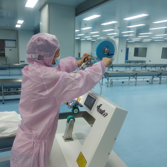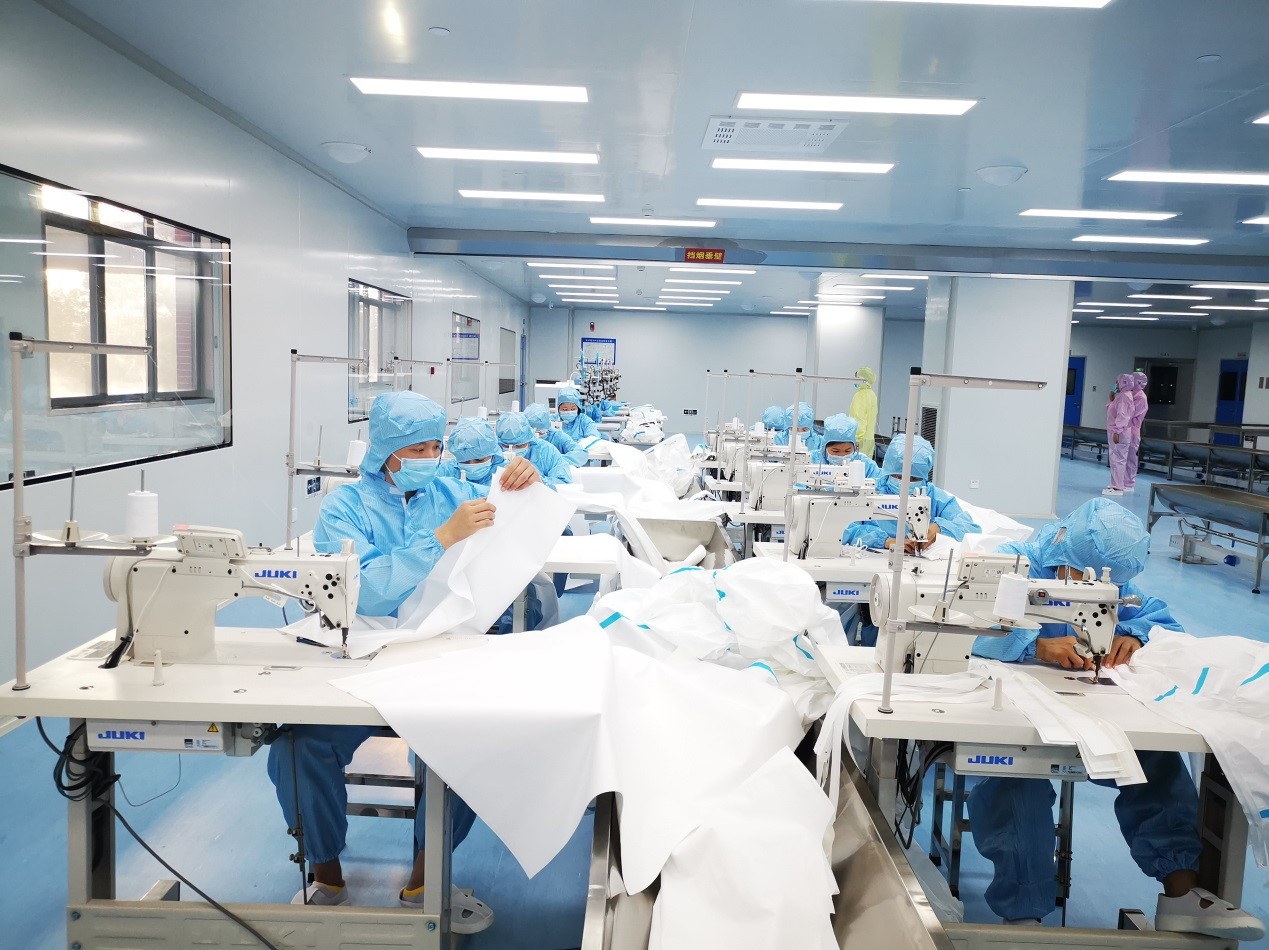 2020年7月7日,1200平10萬(wàn)級(jí)潔凈車間開(kāi)放投產(chǎn)。當(dāng)天早上6:00,第一臺(tái)用于防護(hù)服生產(chǎn)機(jī)器進(jìn)入無(wú)菌車間,經(jīng)過(guò)基礎(chǔ)調(diào)試后,車間開(kāi)始了緊張的生產(chǎn),12分鐘后,第一件防護(hù)服正式下線。